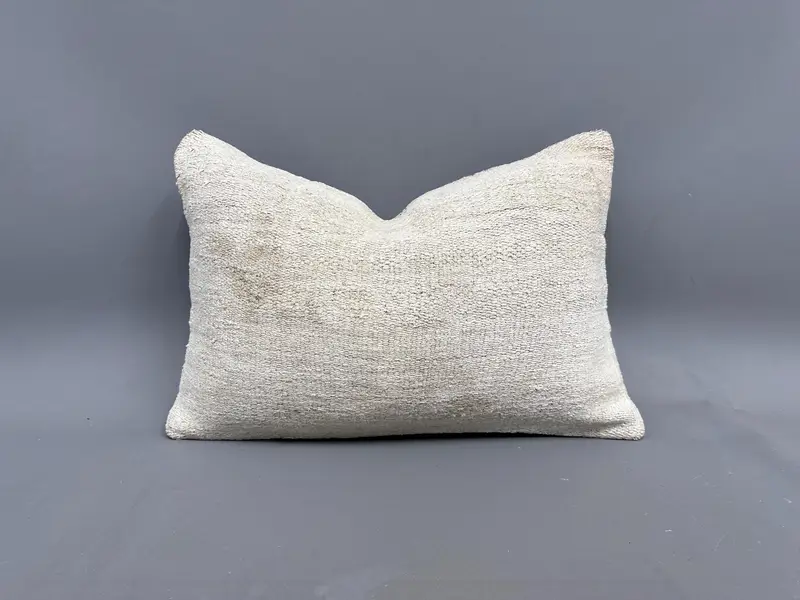 Almohada de tiro Kilim del suroeste tejida a mano, cojín beige vintage