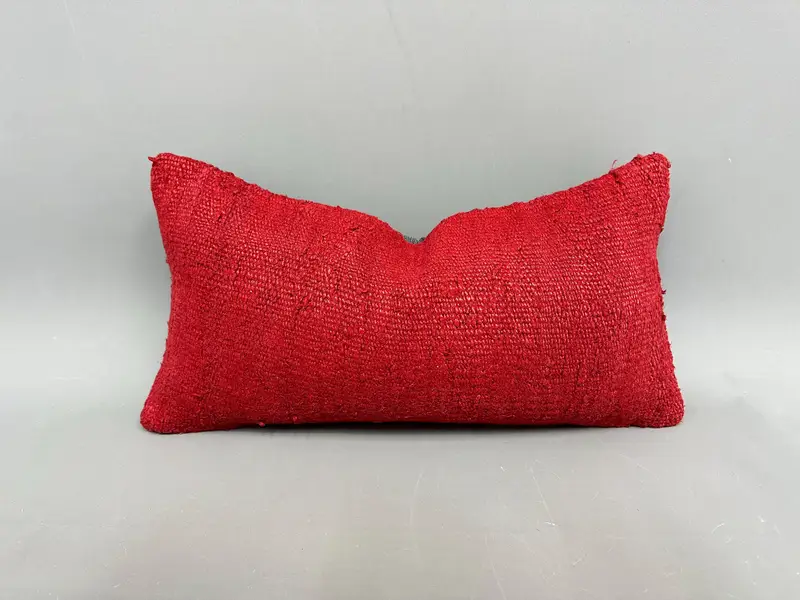 Almohada de lanzamiento Kilim del suroeste tejida a mano, almohada rectangular roja vintage