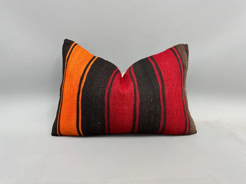 Almohada de tiro a rayas rojas y marrones, cojín bordado vintage