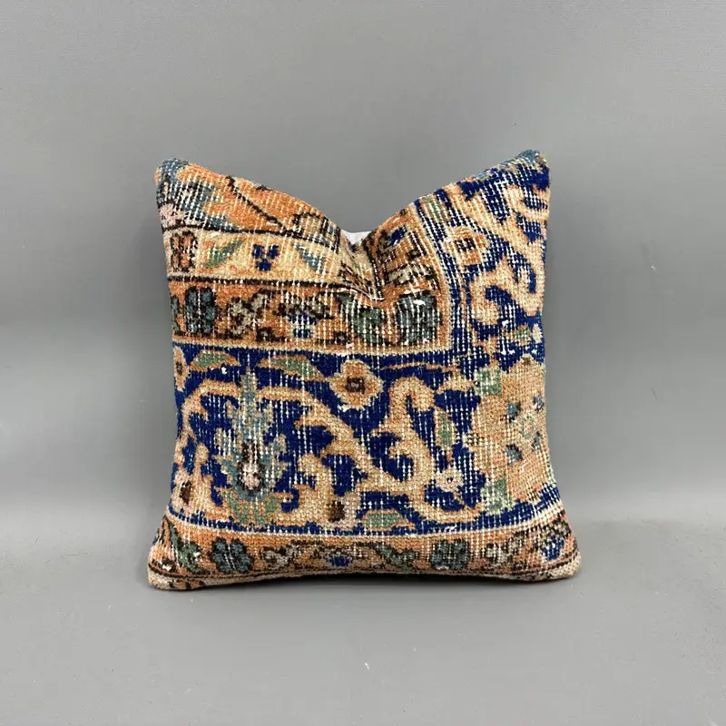 Almohada de lanzamiento Kilim tejida a mano, cojín vintage azul y naranja