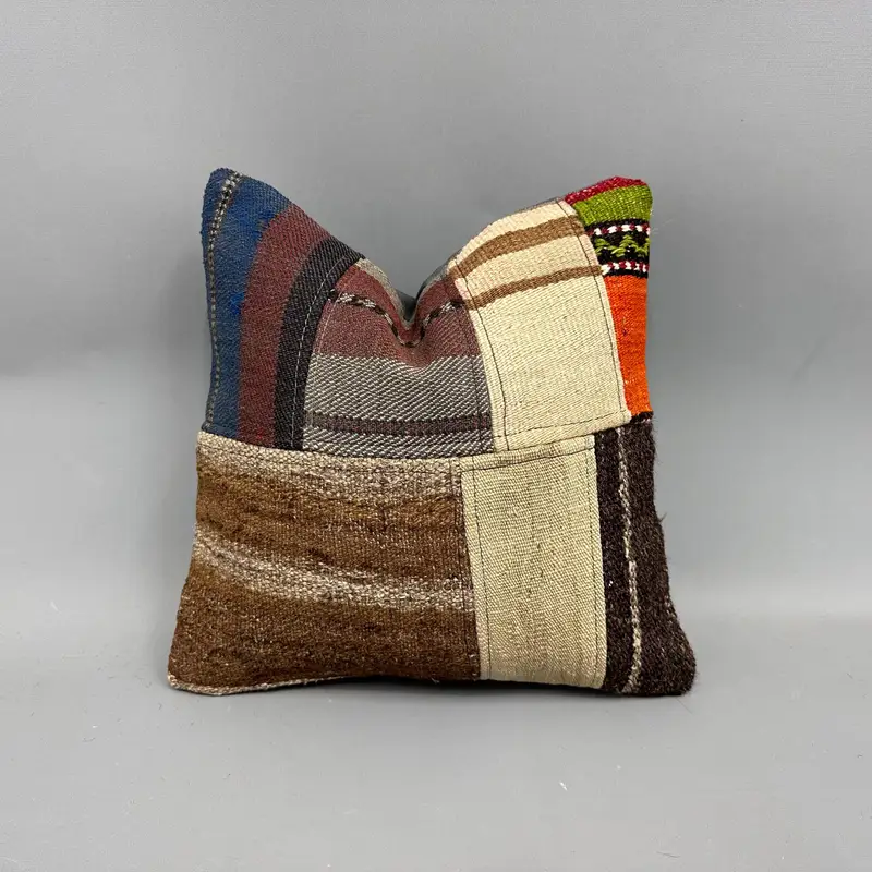 Almohada de lanzamiento Kilim tejida a mano, cojín vintage a rayas