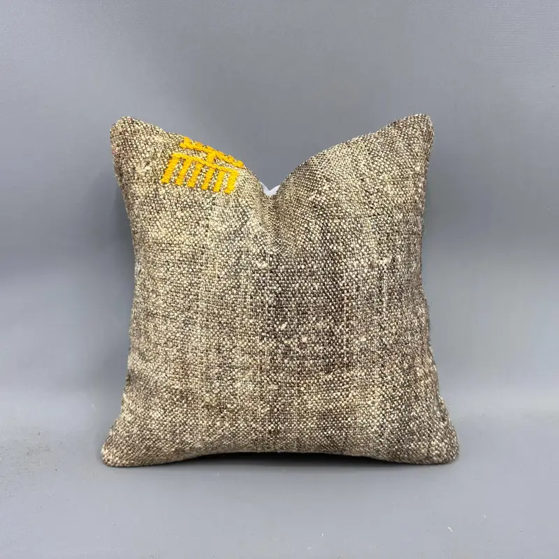 Kilim del suroeste tejido a mano, almohada de tiro vintage 14x14, marrón y naranja