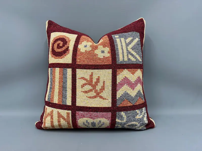 Almohada de lanzamiento Kilim beige y rojo, cojín Kilim vintage