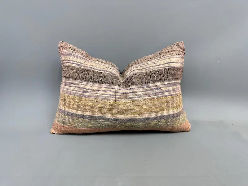 Almohada Kilim a rayas beige y marrón, almohada de lanzamiento vintage de 16x24 pulgadas