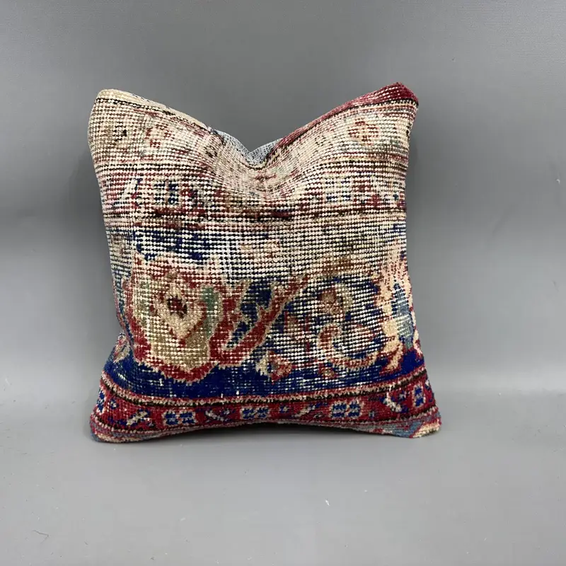 Almohada de tiro Kilim rojo del suroeste, almohada bordada vintage