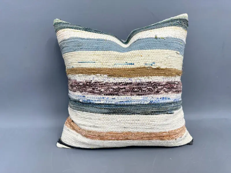 Almohada de tiro Kilim a rayas beige y bronce, almohada Kilim vintage