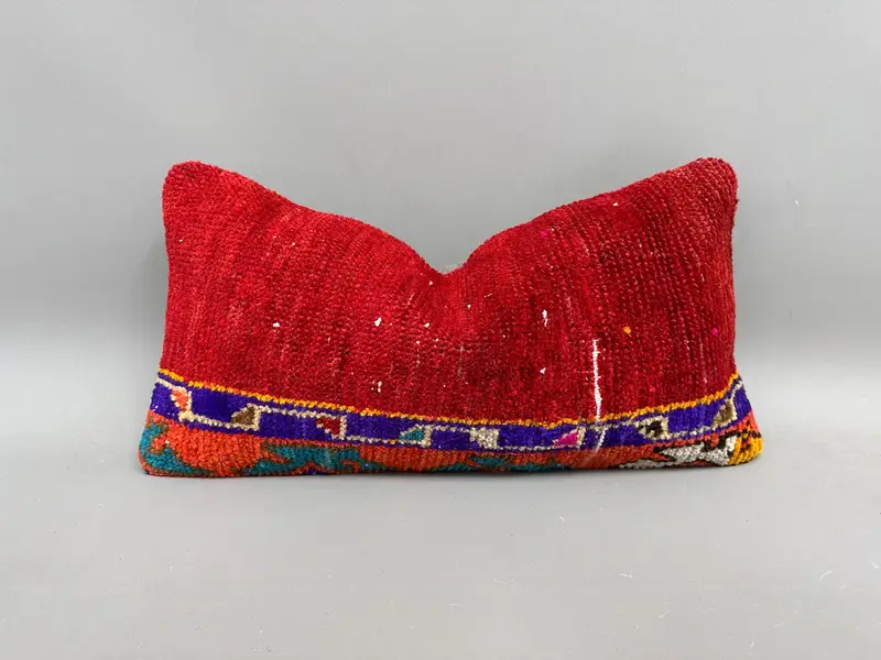 Almohada de tiro Kilim del suroeste rojo, cojín bordado vintage