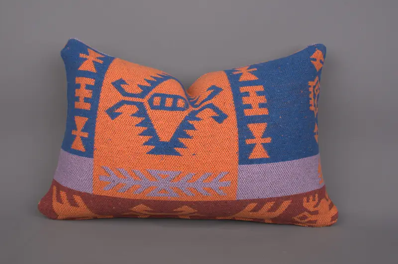 Almohada de lanzamiento geométrico naranja y bronce, cojín bordado vintage