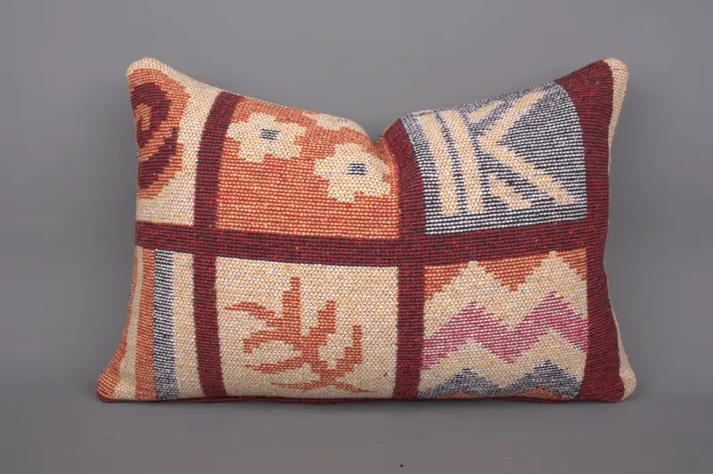 Almohada Kilim bordada en rojo y amarillo, almohada de tiro hecha a mano de 16x24