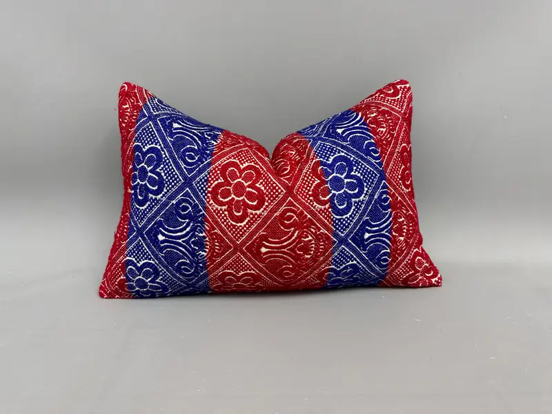 Almohada de lino rojo con patrón geométrico, almohada vintage