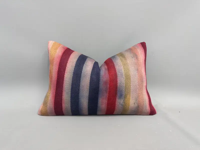 Almohada de tiro a rayas rojas y beige, almohada bordada vintage