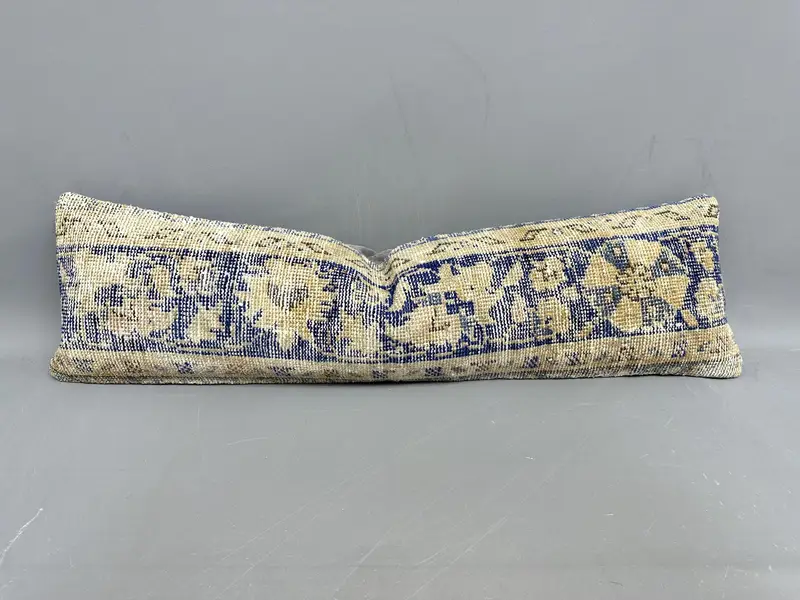 Almohada Kilim del suroeste tejida a mano, almohada de lanzamiento vintage azul y beige
