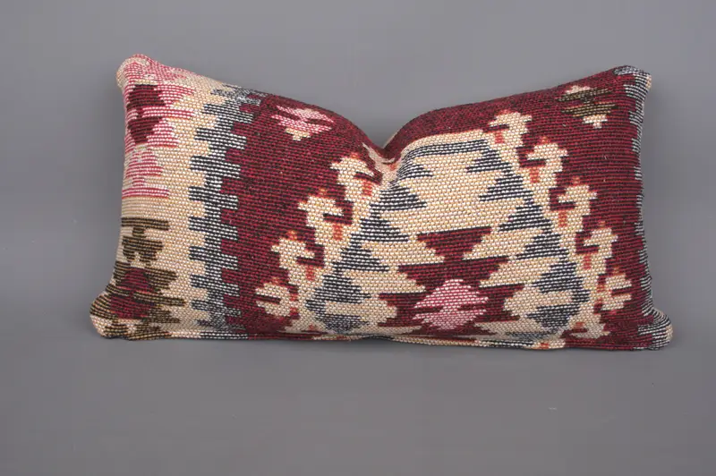 Almohada bordada del suroeste rojo, almohada de tiro vintage 12x24