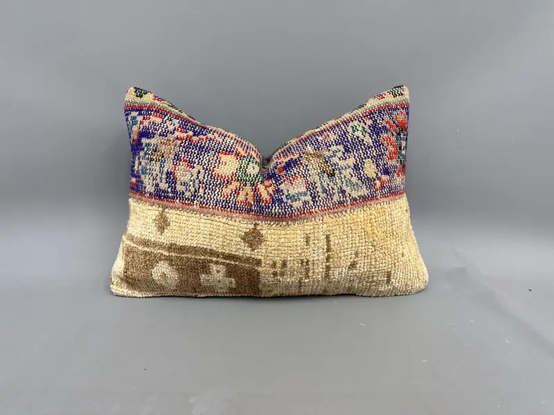 Almohada de lanzamiento de patchwork beige y bronce, cojín Kilim vintage