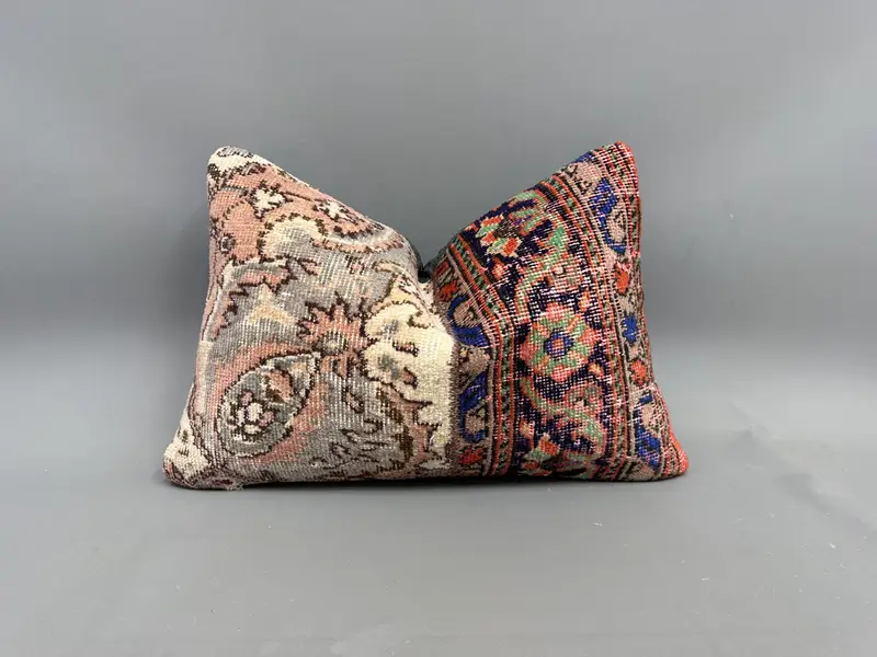 Almohada Kilim de patchwork gris y verde, almohada de tiro hecha a mano de 16x24