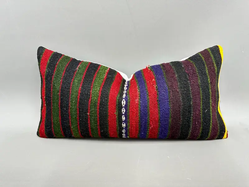 Almohada de tiro de rayas verdes y rojas, cojín bordado 12x24