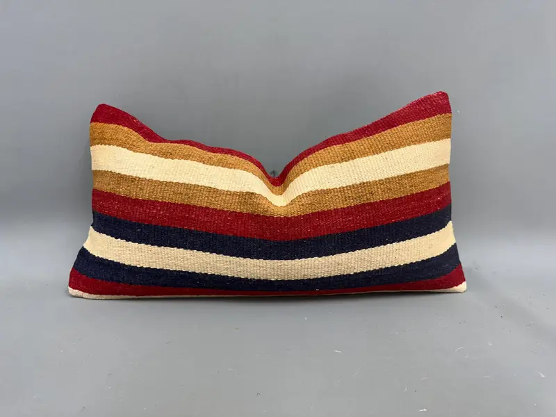 Almohada de rayas rojas y bronce, almohada de lanzamiento vintage de 12x24 pulgadas
