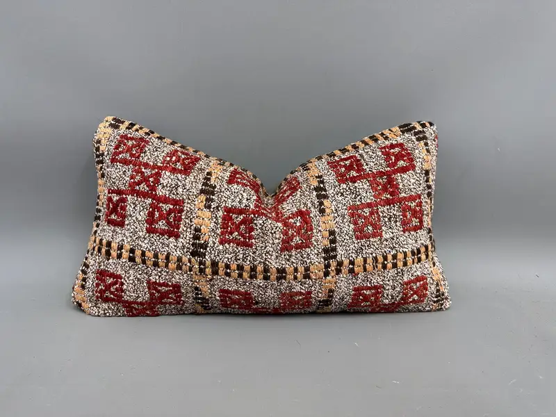 Almohada de lanzamiento bordada del suroeste rojo, cojín vintage hecho a mano de 12x24