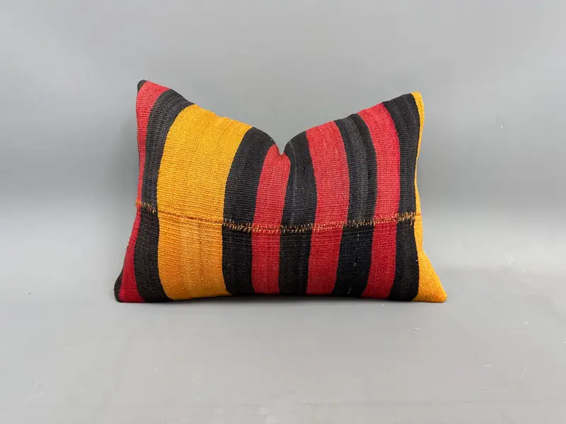 Almohada de tiro a rayas rojas y marrones, cojín bordado vintage