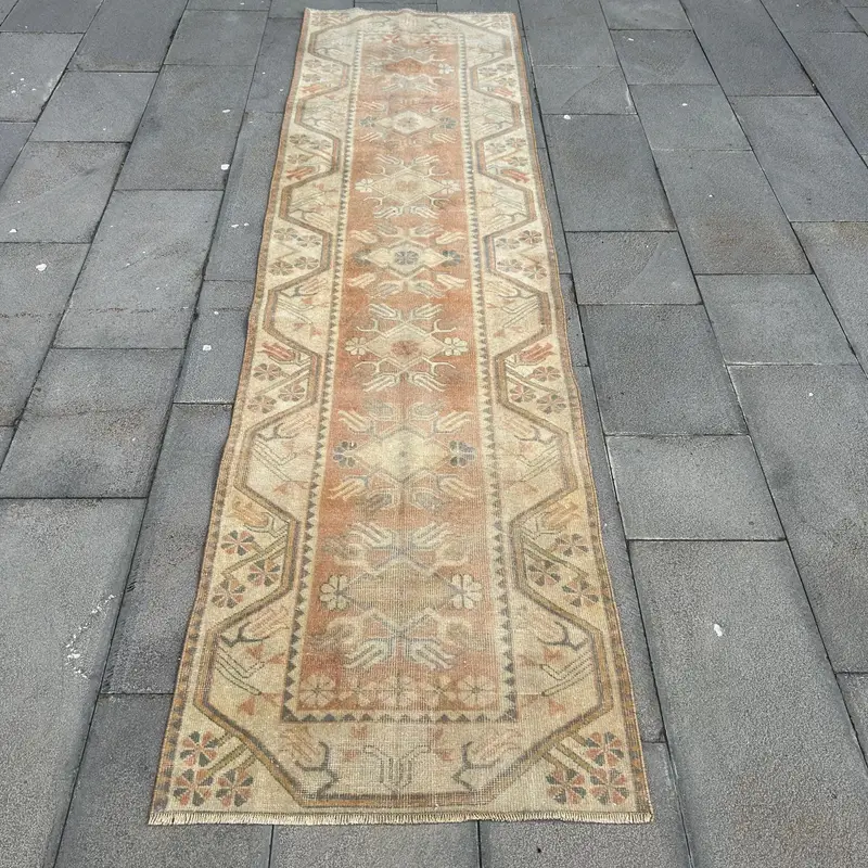 Elegante alfombra a cuadros beige y naranja, decoración elegante de 2,4 x 9,2 pies