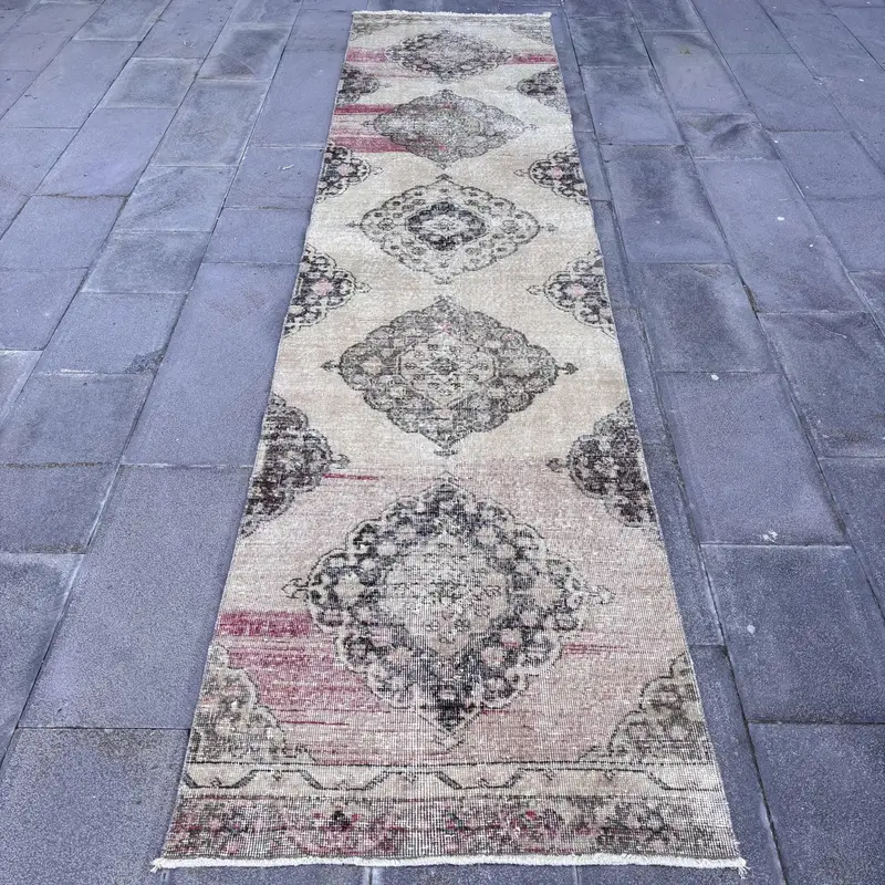 Alfombra elegante de patchwork beige y negro, 2,8 x 12,2 pies