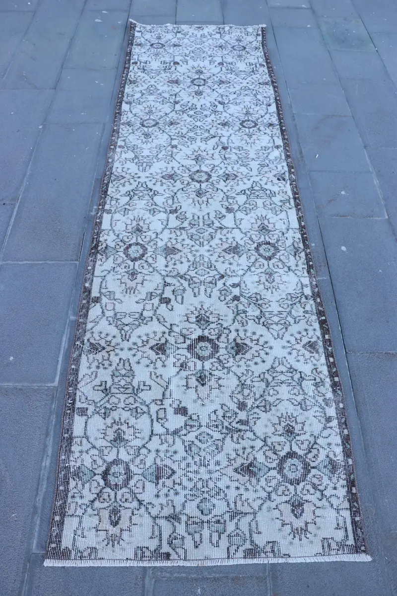 Elegante alfombra marrón y beige, diseño con bordes de 2,7x9,2 pies