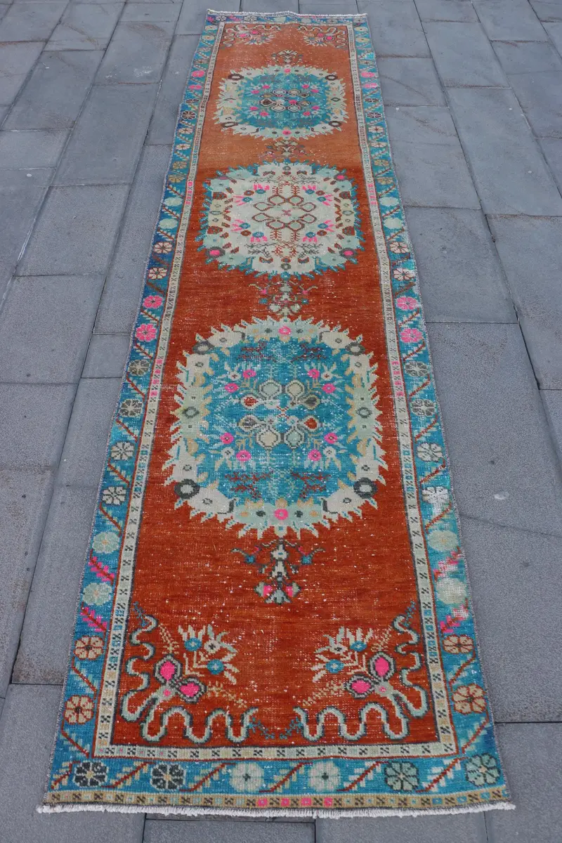 Alfombra de lunares naranja y azul, decoración vibrante de 2,7 x 11,4 pies