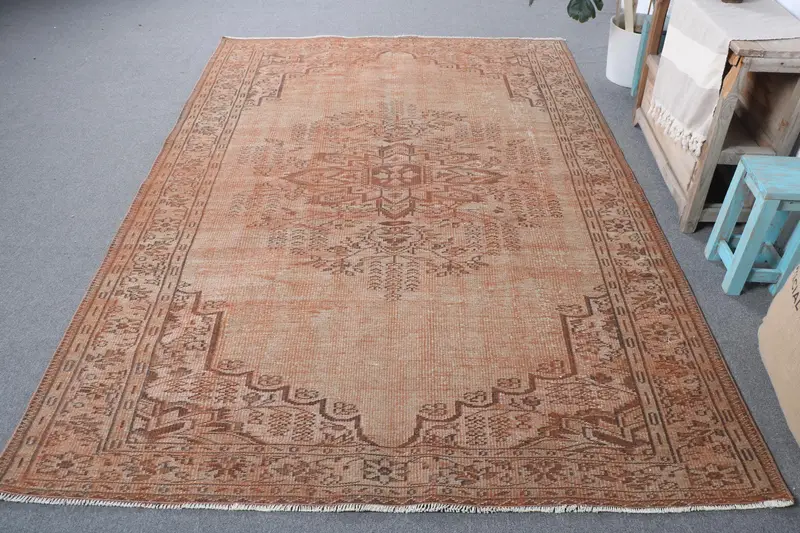 Alfombra Ikat de color naranja vibrante, espacio acogedor de 6 x 8 pies