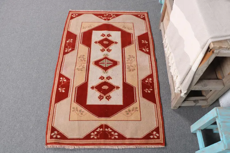 Alfombra floral beige y roja, decoración elegante de 2,5x3,9 pies