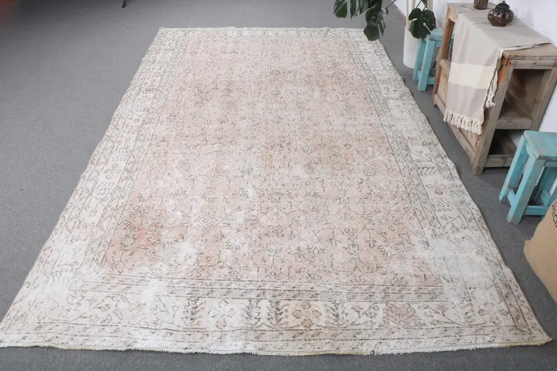 Alfombra abstracta naranja, 6,2 x 10,2 pies con acento beige