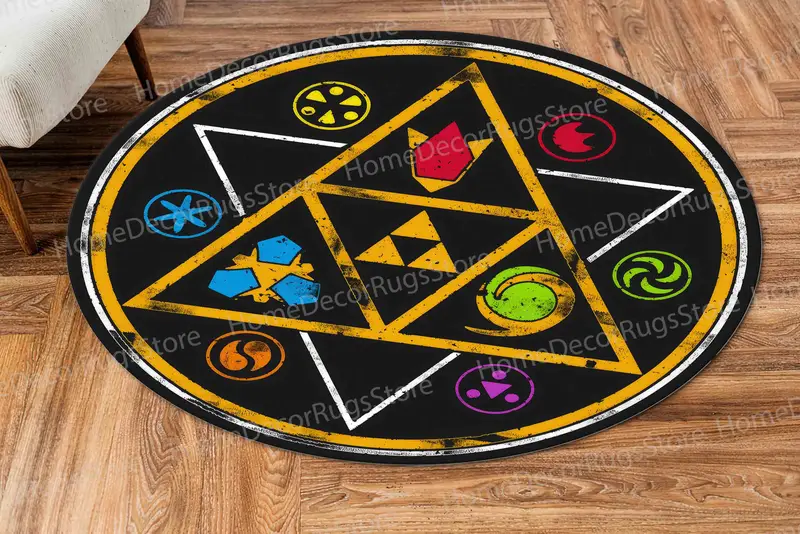 Alfombra estampada inspirada en Zelda: diseño circular moderno para sala de jugadores