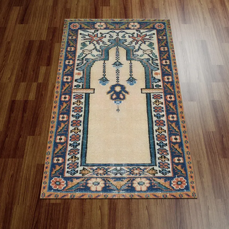 Alfombra Estampada De Oración Con Estampado Floral Vintage Beige - Sacred Elegance