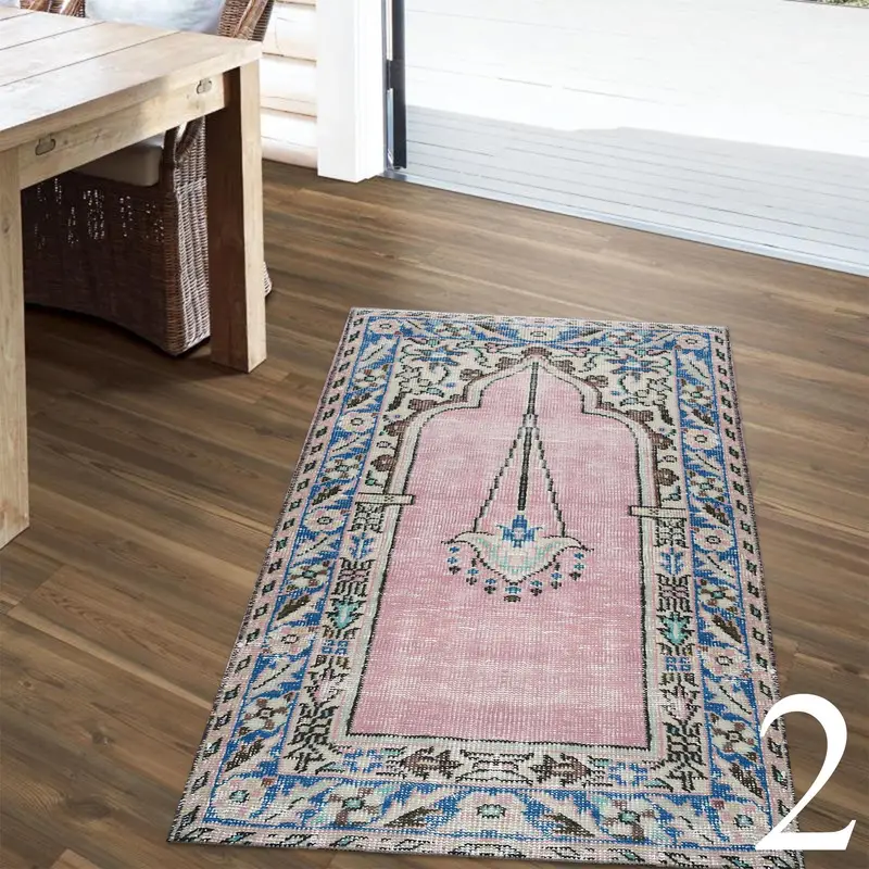Alfombra estampada con estampado floral: alfombra de oración de diseño turco en rosa, naranja y beige