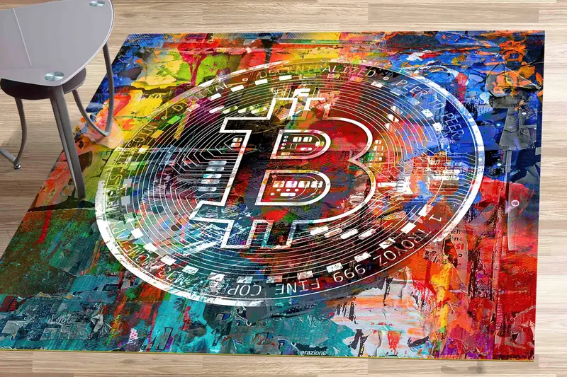 Alfombra estampada con temática de criptomonedas: diseño moderno de Bitcoin