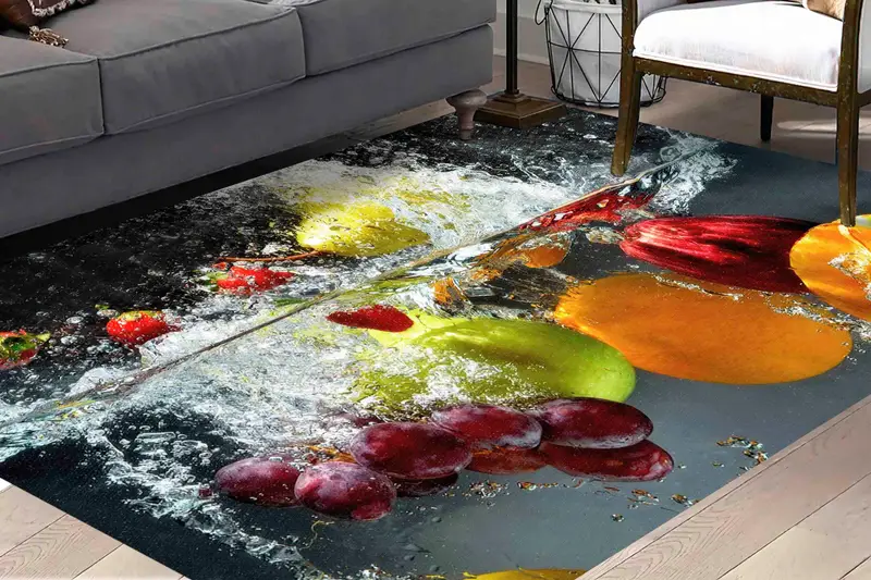 Alfombra estampada con salpicaduras de frutas coloridas: moderna, moderna y vibrante