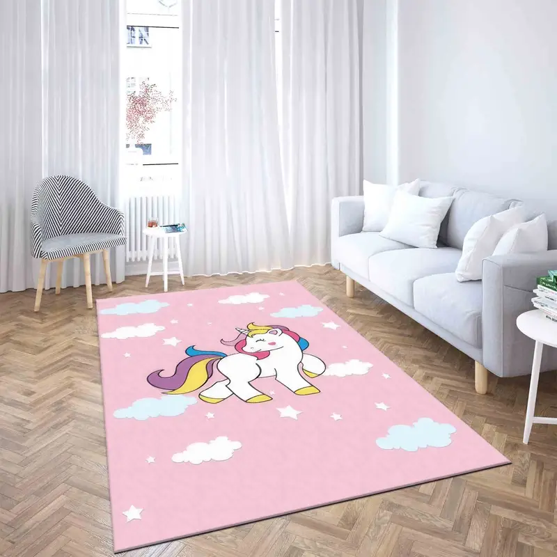 Alfombra Estampada Nubes Rosa para Habitación Bebé - Suave y Acogedora