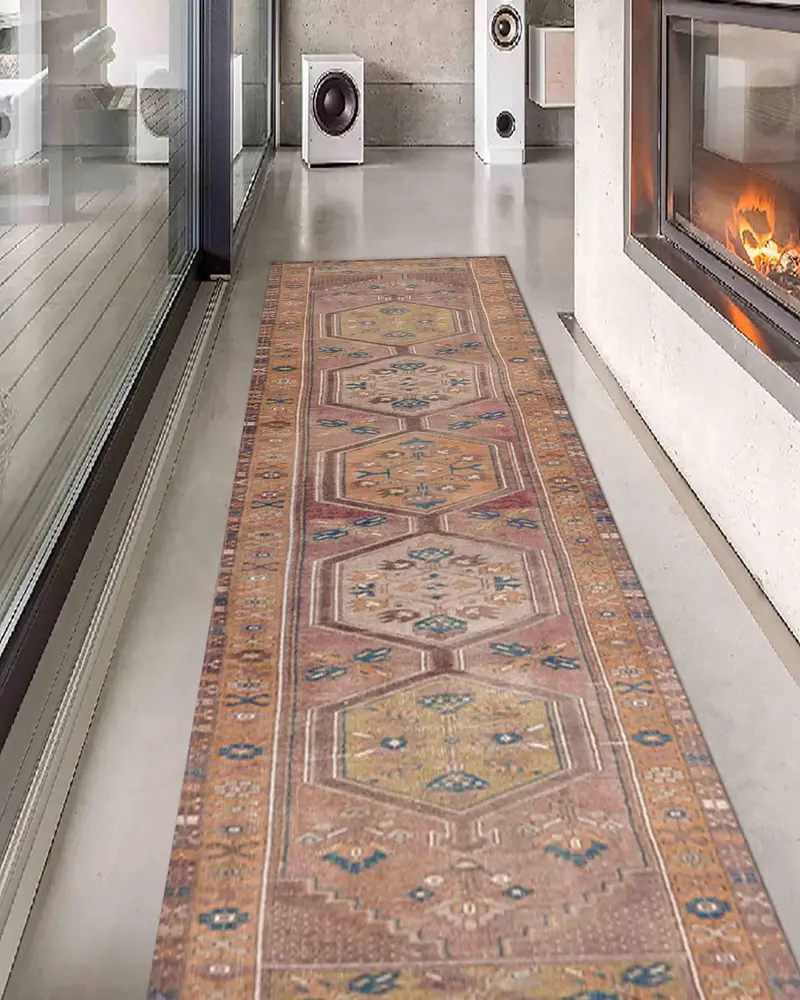 Alfombra con estampado geométrico azteca marrón y diseño navajo vintage