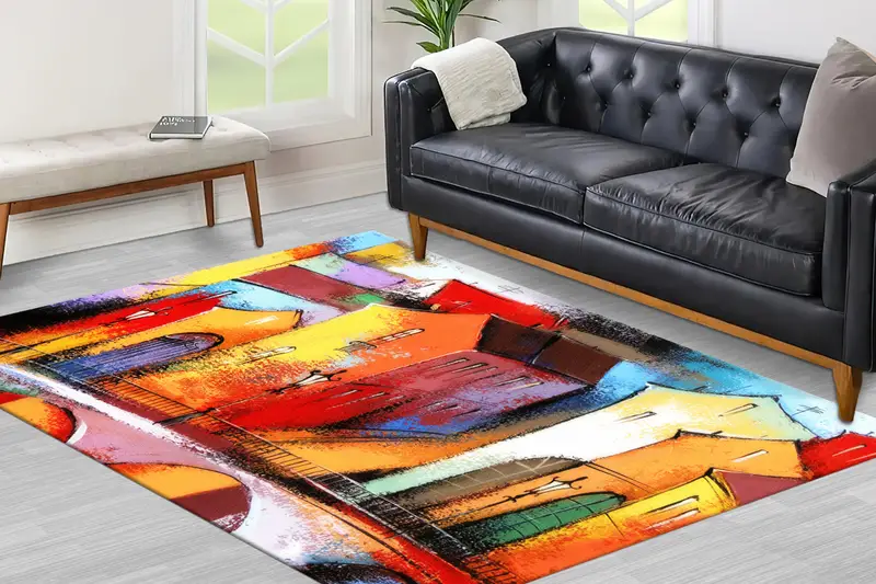 Alfombra estampada con vistas a la ciudad colorida: decoración de paisaje moderna y moderna