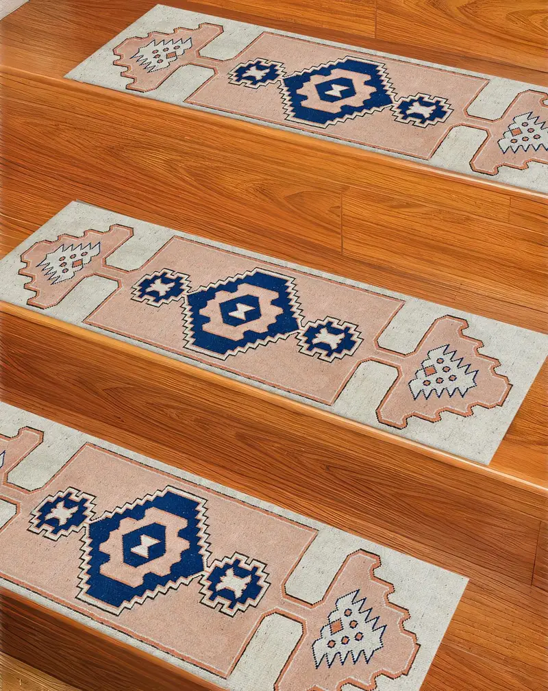 Alfombra con estampado geométrico azul marino: Alfombra con peldaños de diseño Kilim Boho