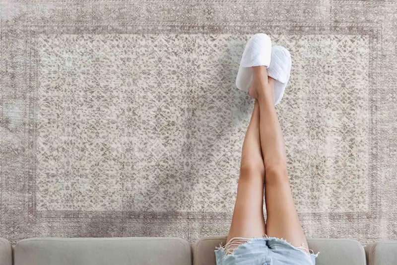 Alfombra vintage con estampado floral Oushak, marrón y beige