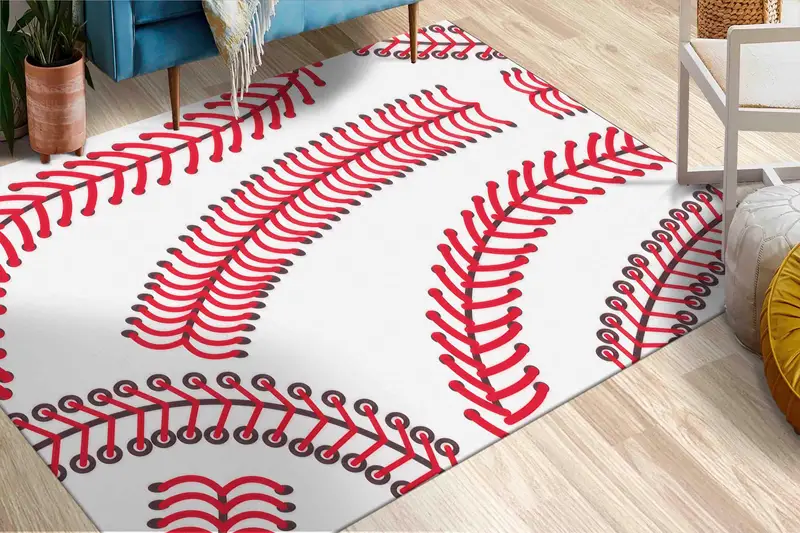 Alfombra con estampado de béisbol en blanco y rojo para decoración de habitación de niño