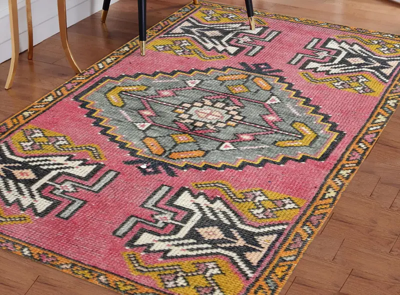 Alfombra estampada con estampado de kilim geométrico azteca gris, diseño vintage
