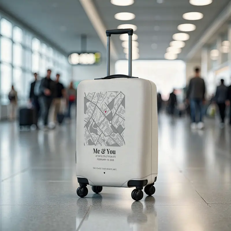Cubierta de equipaje de mapa personalizada, cubierta de maleta de mapa de ciudad personalizada con nombres, regalo de San Valentín para parejas, cubierta de viaje romántico