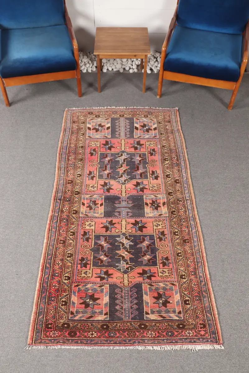 Alfombra turca, alfombra pequeña de 3,3x6,4 pies, alfombra marrón rosa