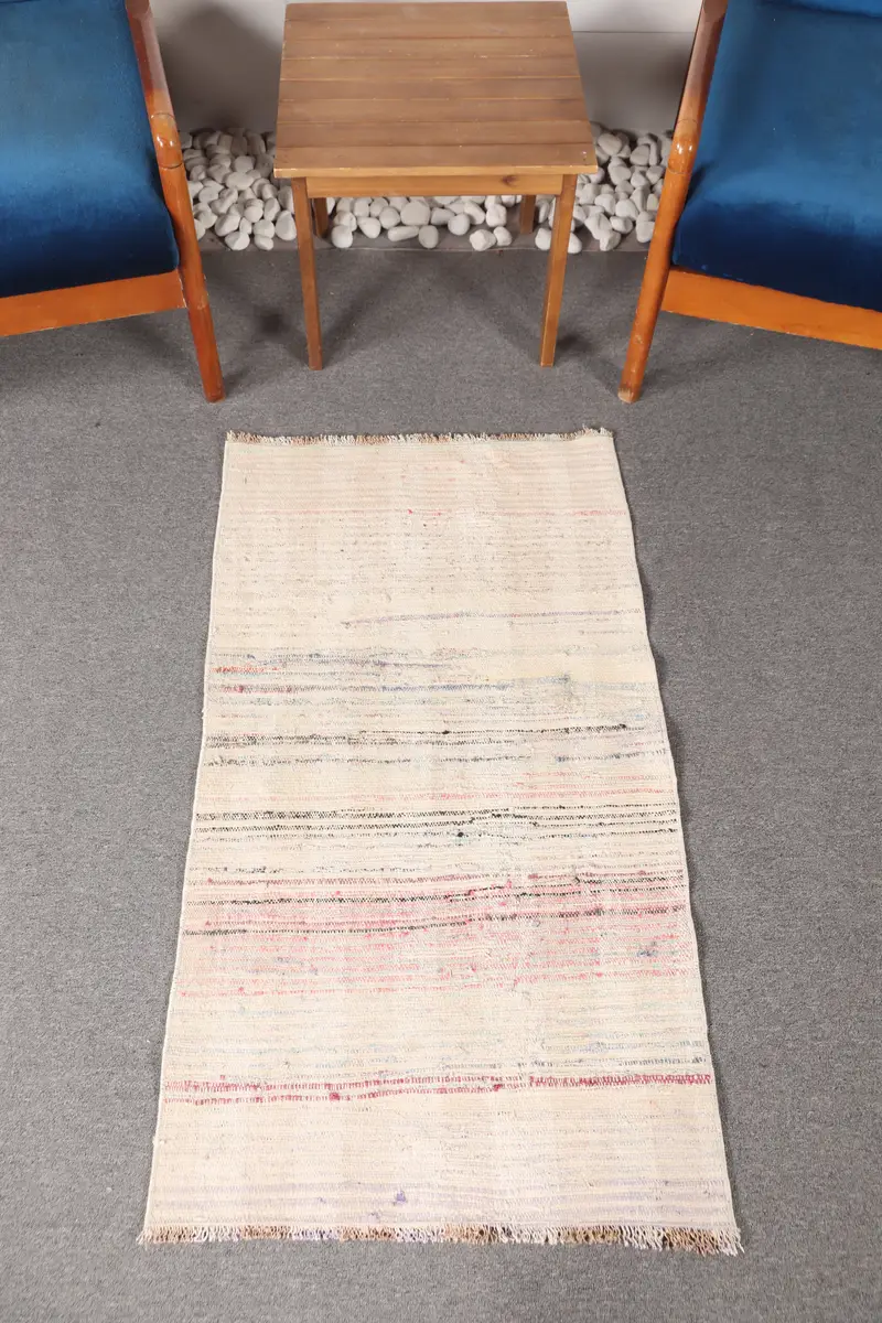 Alfombra turca pequeña 2,2x3,9 pies, alfombra vintage Kilim beige a rayas