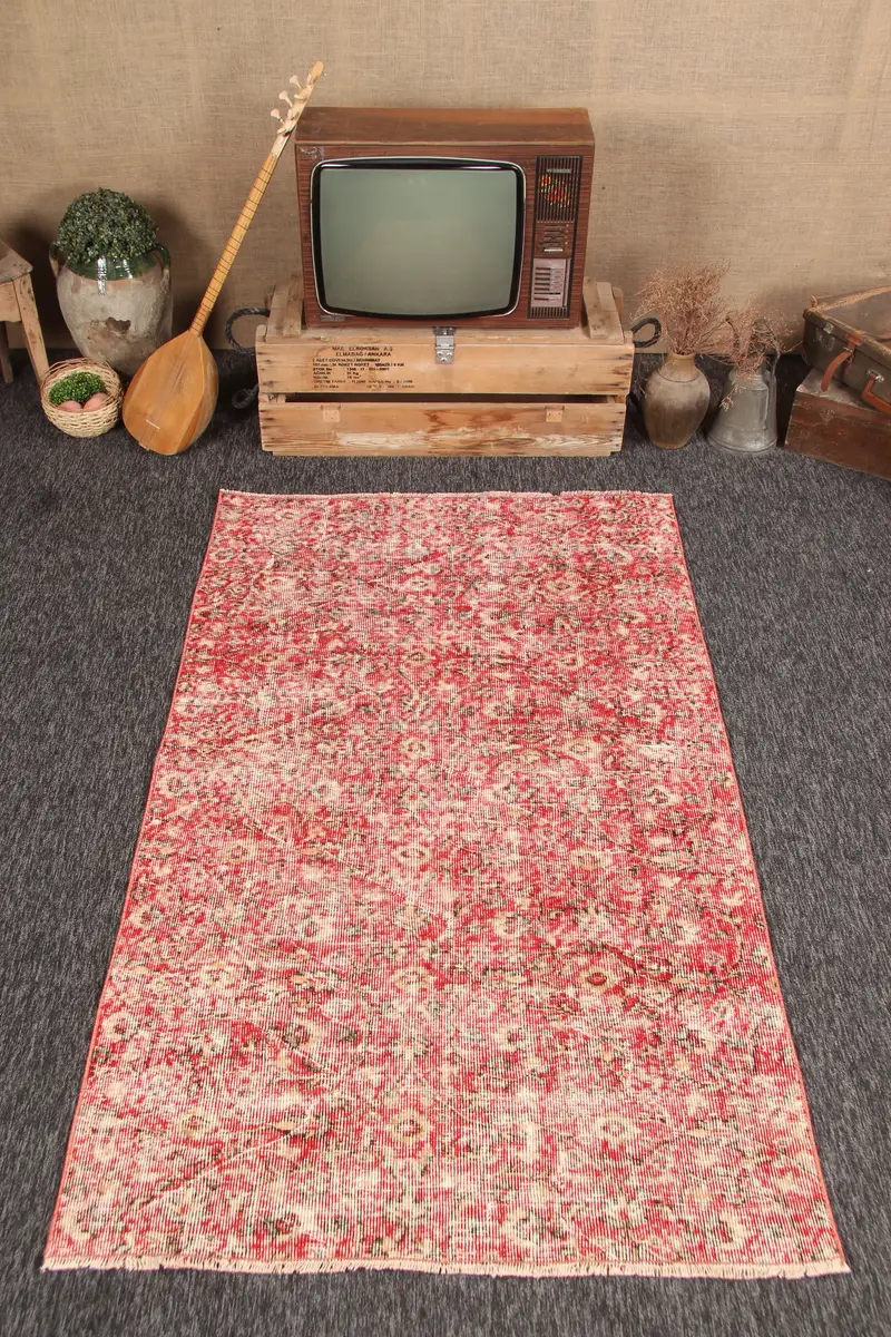 Alfombra turca de 3,9x6,6 pies, alfombra floral marrón roja de lana