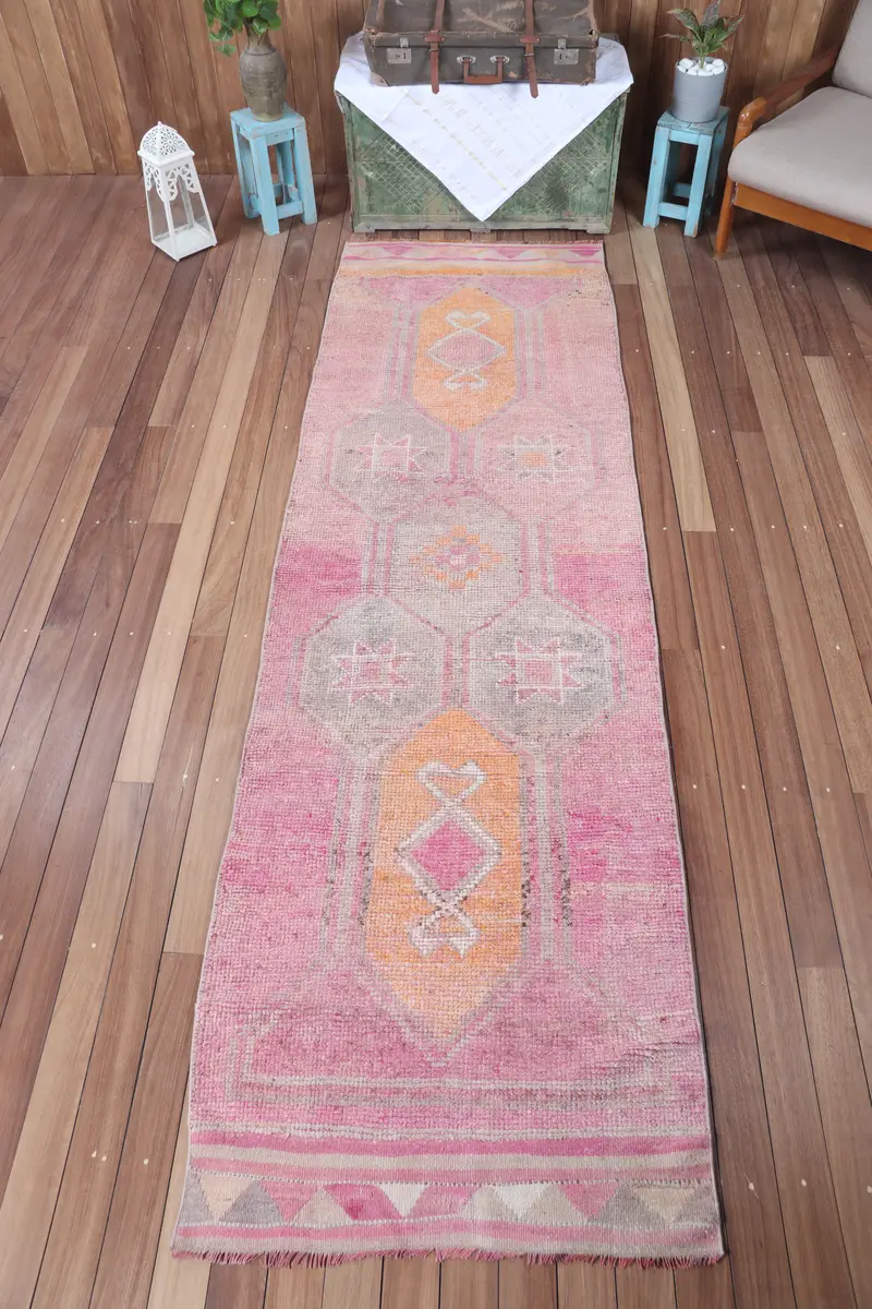 Alfombra vintage, alfombra pequeña de 3x10,2 pies, alfombra Herki naranja rosa