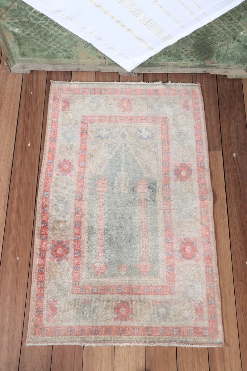 Alfombra turca, alfombra vintage de 1,9x3 pies, alfombra de lana geométrica verde