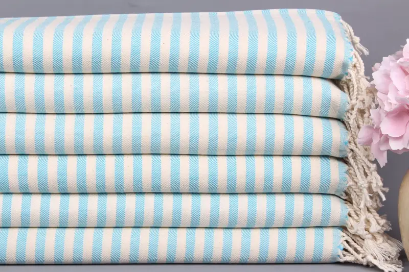 Toalla de Mano Turca de Algodón Orgánico Chevron Turquesa, 24x40 Pulgadas