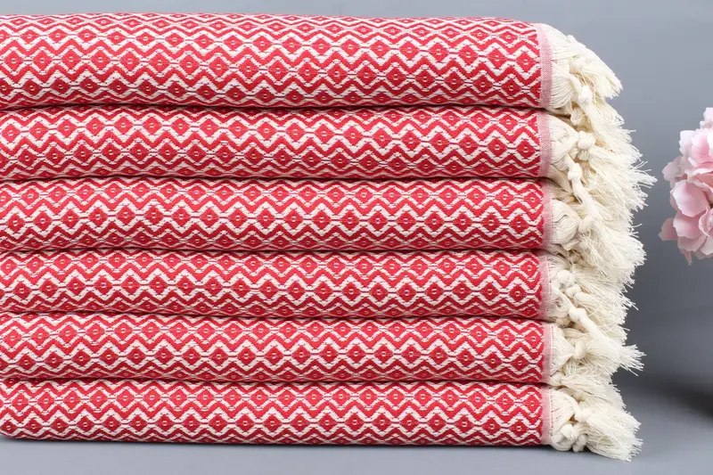 Toalla de playa turca personalizada Diamante rojo, algodón orgánico, 40 x 71 pulgadas